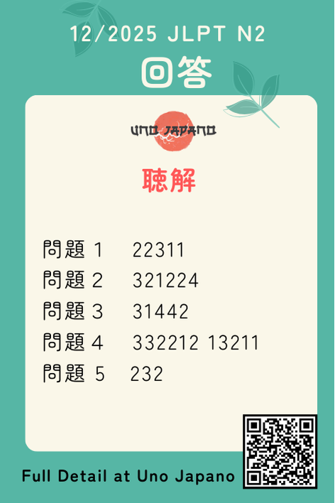 This is only for reference answer keys of JLPT N2 12/2025 【Chinese domestic JLPT】