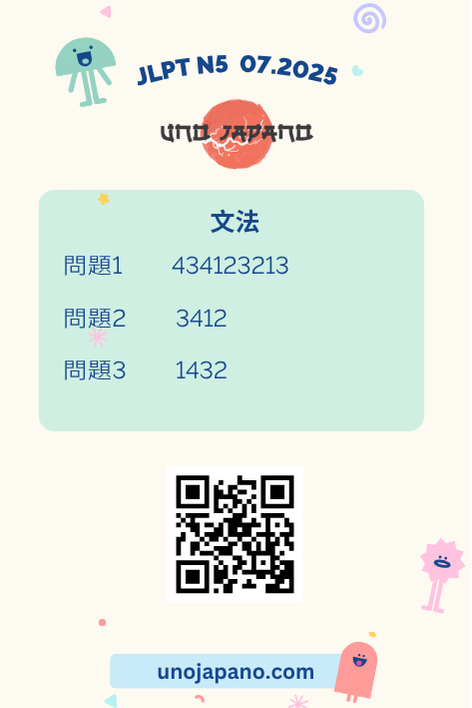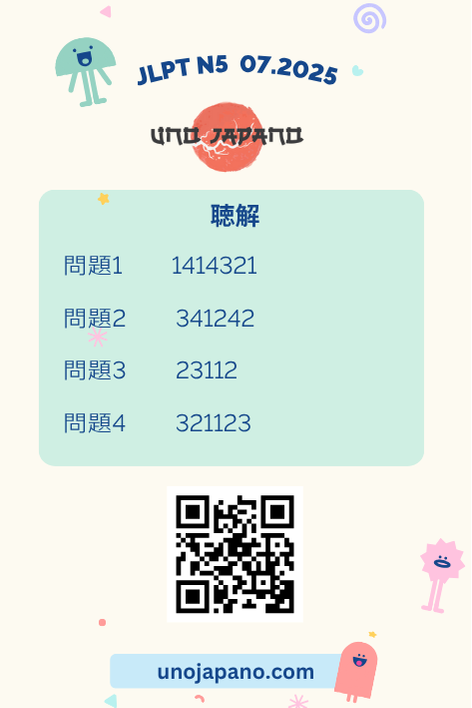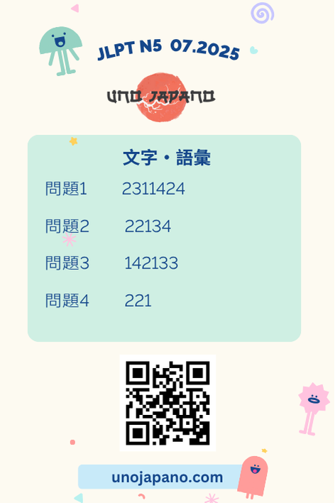 This is only for reference answers of JLPT N5 7/2025
