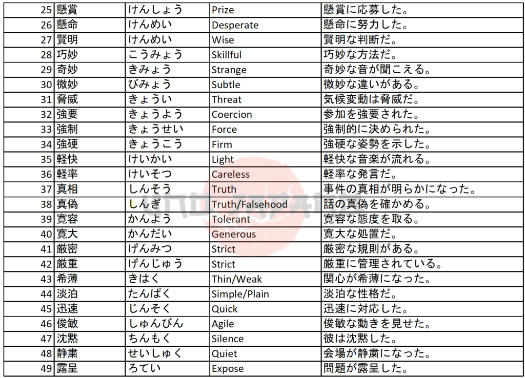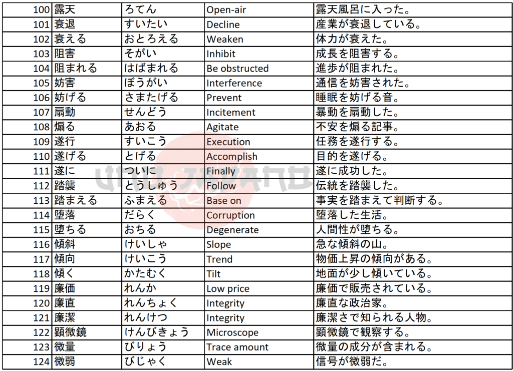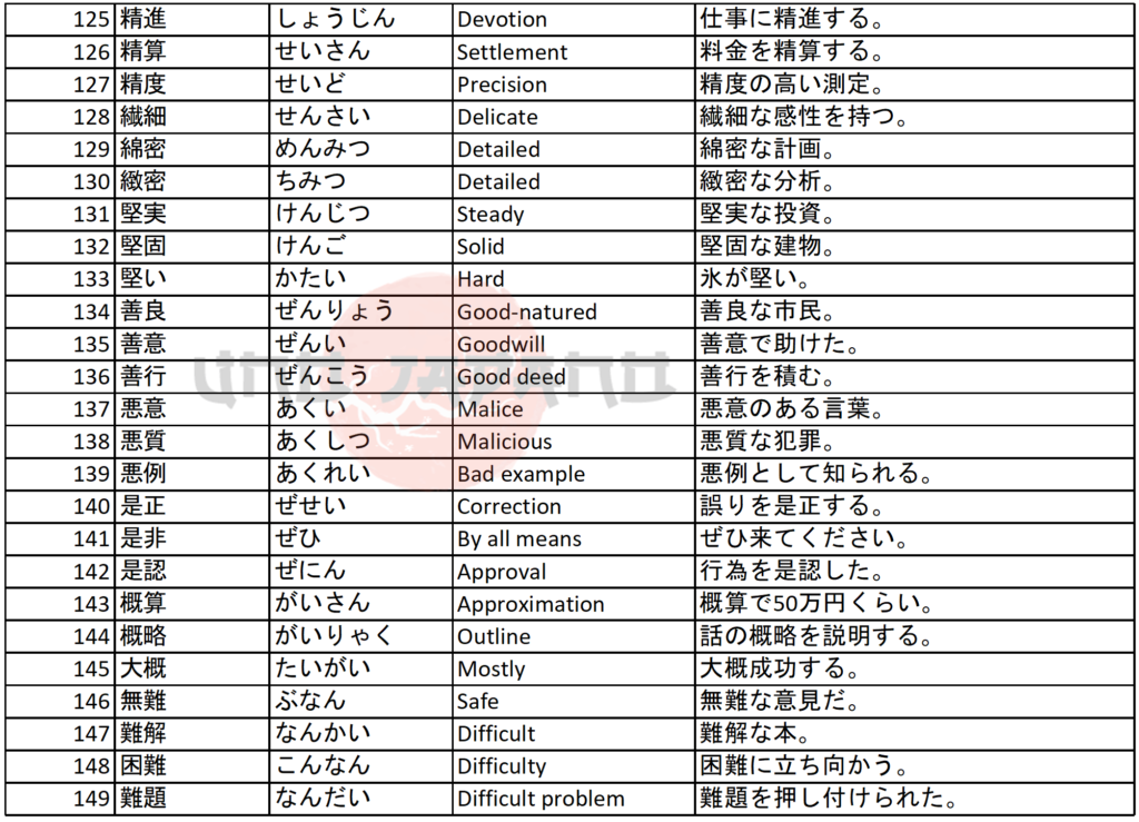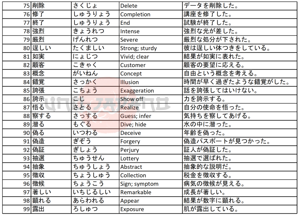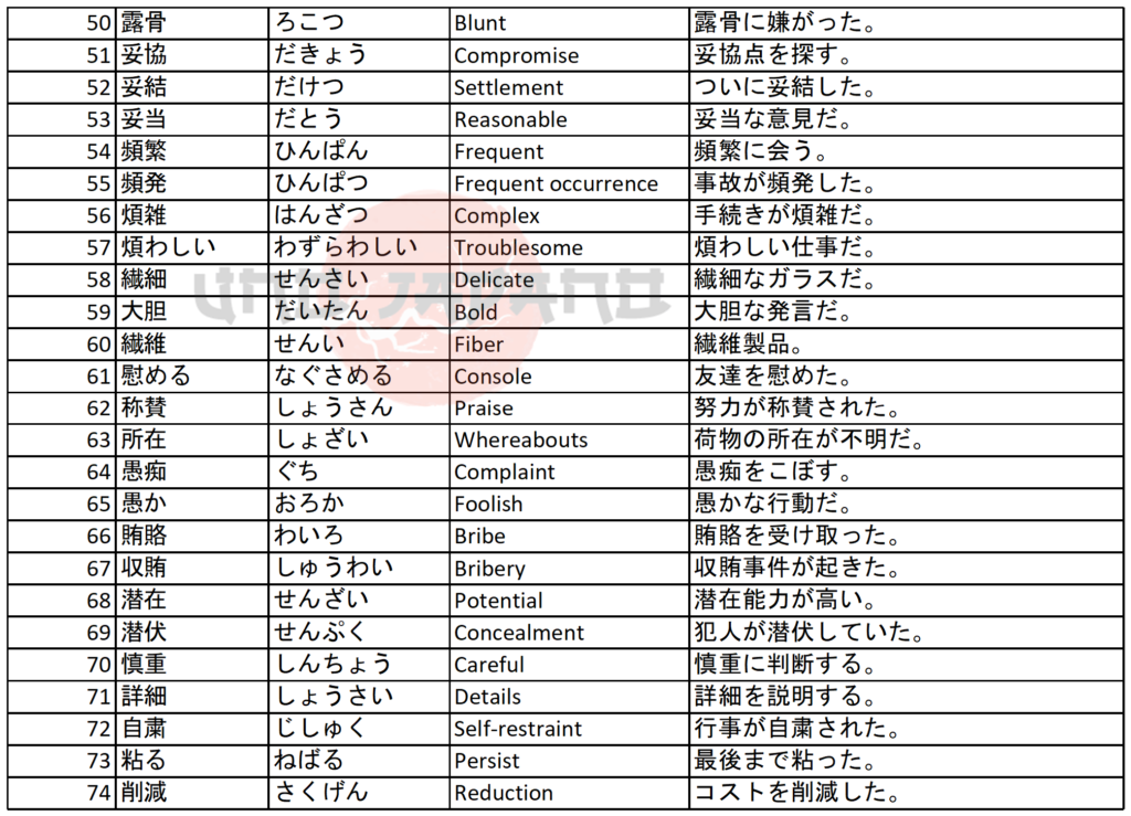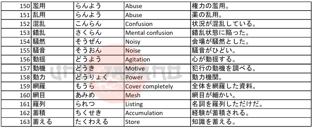 Title: Frequently Confused Vocabulary (Kanji / Reading / English Meaning)